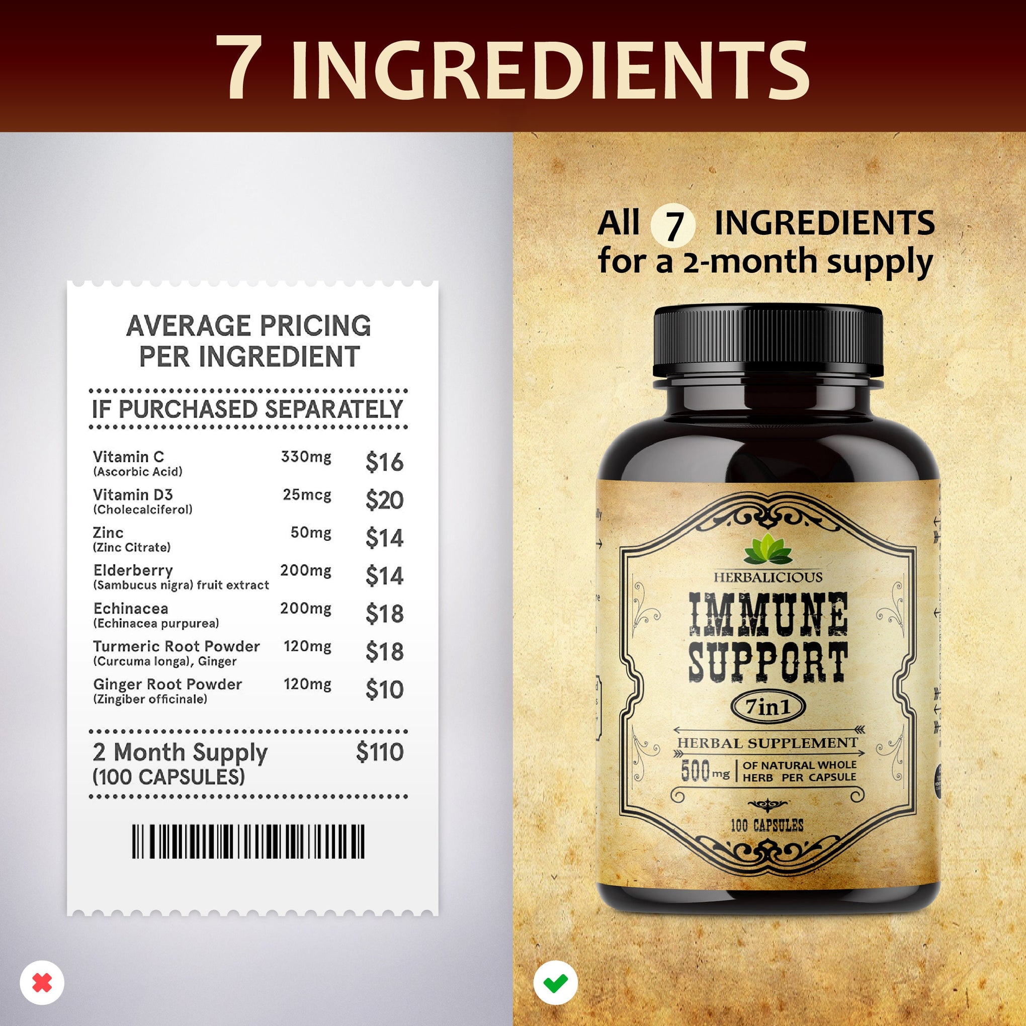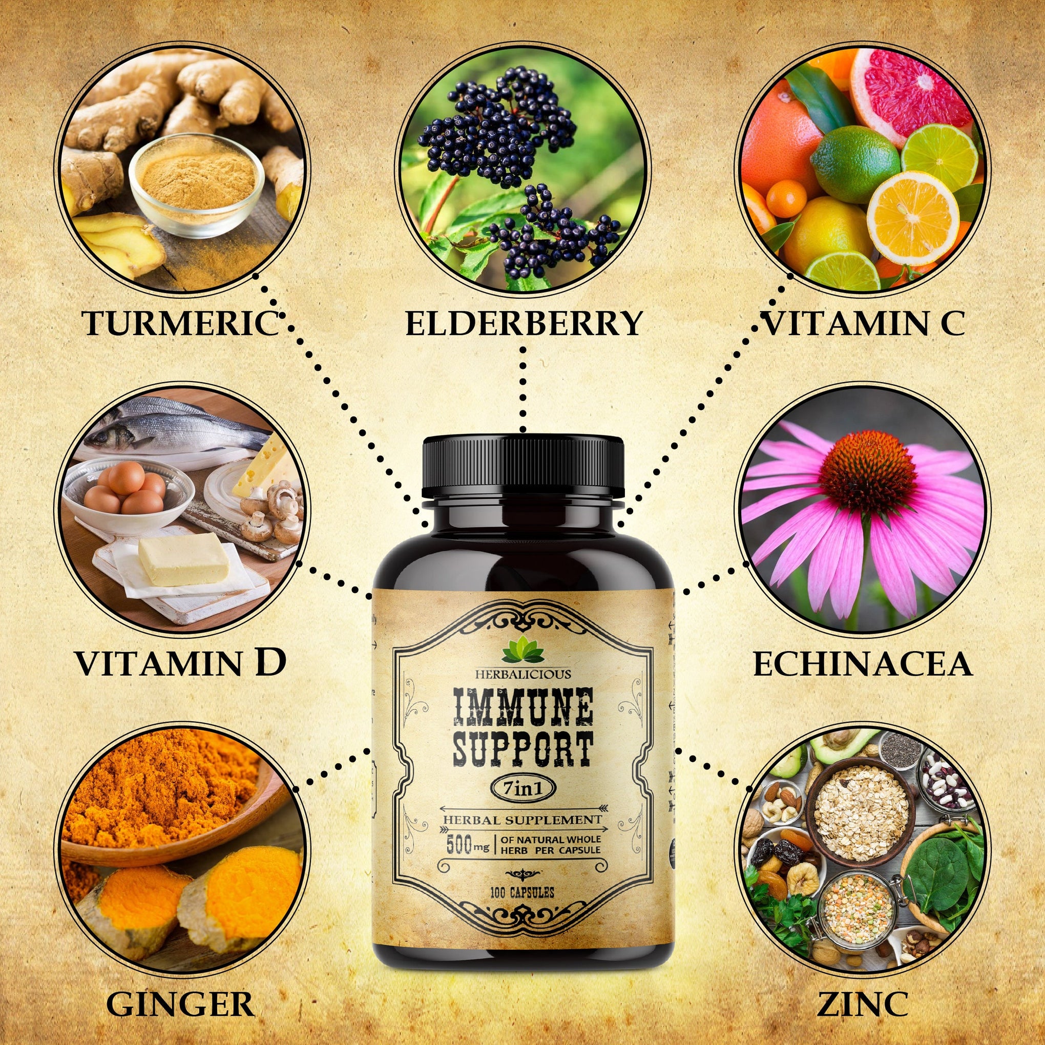7-in-1 Immune Support Supplement - Elderberry with Zinc and Vitamin C for Adults - Immune System Booster, 100 capsules